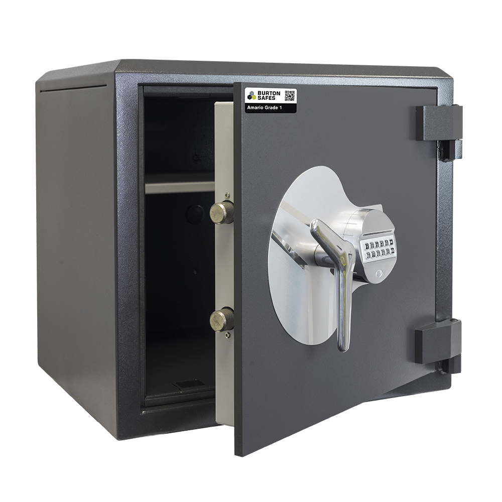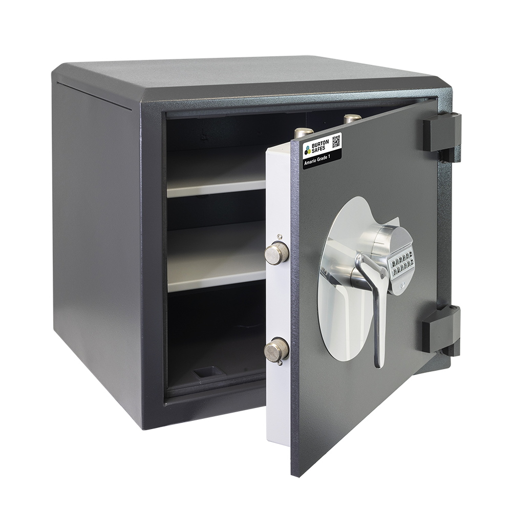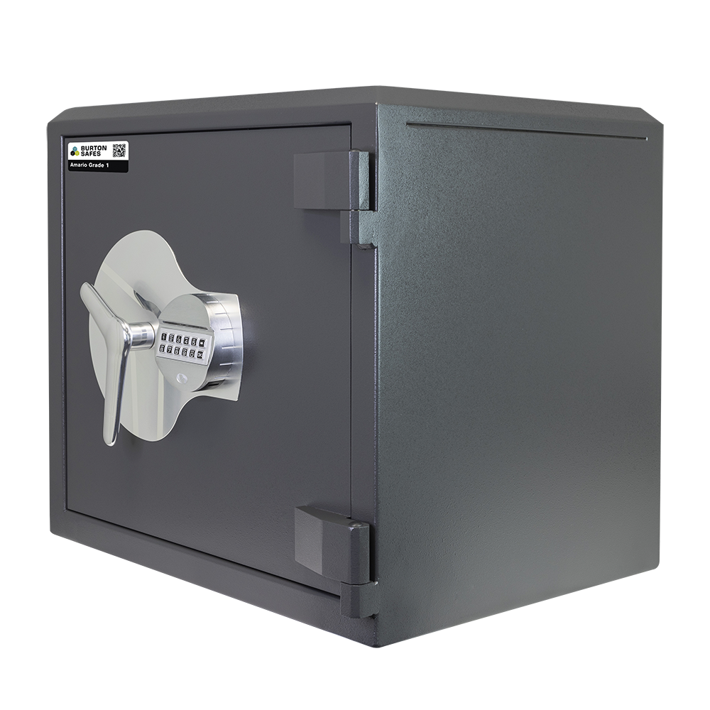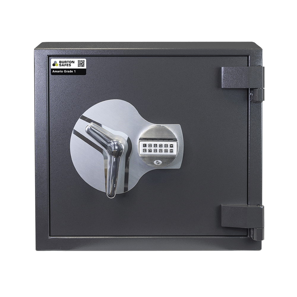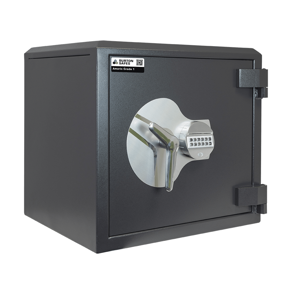 The Burton Amario Grade 1 Size 2 – Electronic Lock is a premium model safe. Ideal for when you need a compact size. It features a high security electronic lock. For your peace of mind this model has been tested by ECBS and is insurance approved by the AiS. It has been certified to a £10,000 cash rating or £100,000 for valuables.
