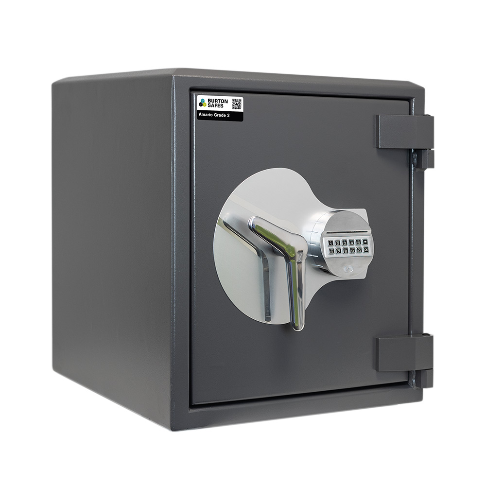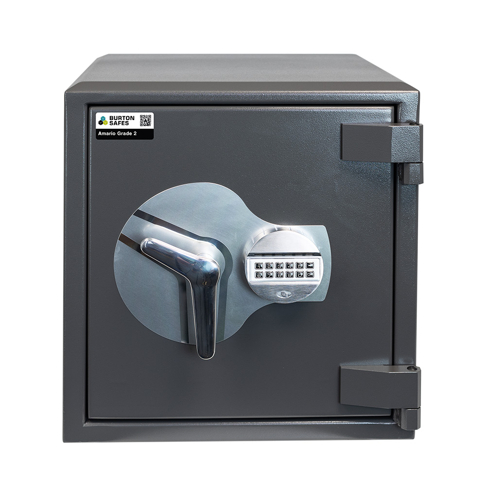 The Burton Amario Grade 2 Size 2 – Electronic locking is a premium model safe. Ideal for when you need a compact size and features an easy to use keypad for access. It is an ideal size for when space is at a premium. For your peace of mind this model has been tested by ECBS and is insurance approved by the AiS. It has been certified to a £17,500 cash rating or £175,000 for valuables.
